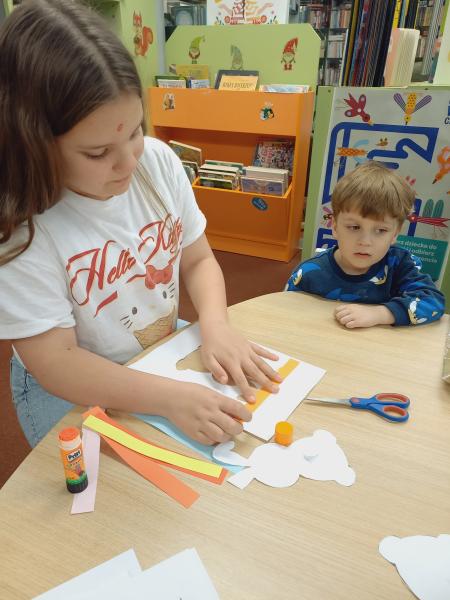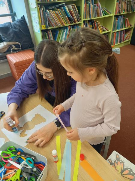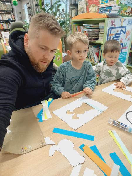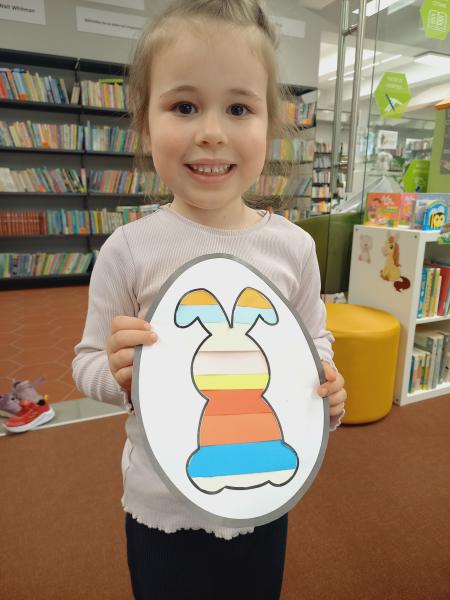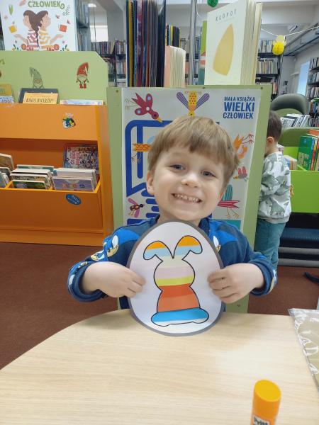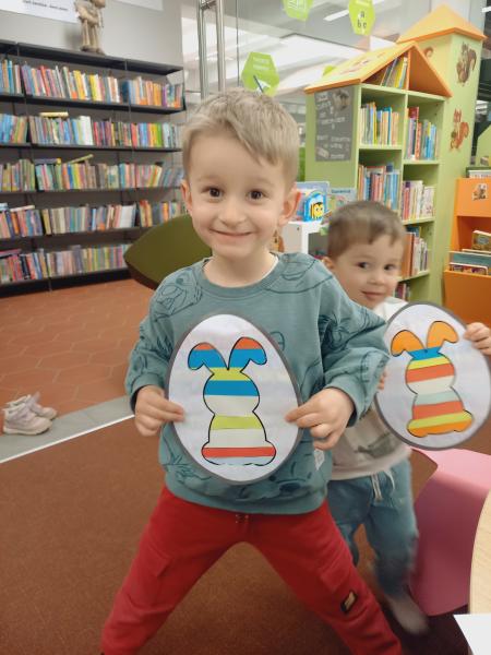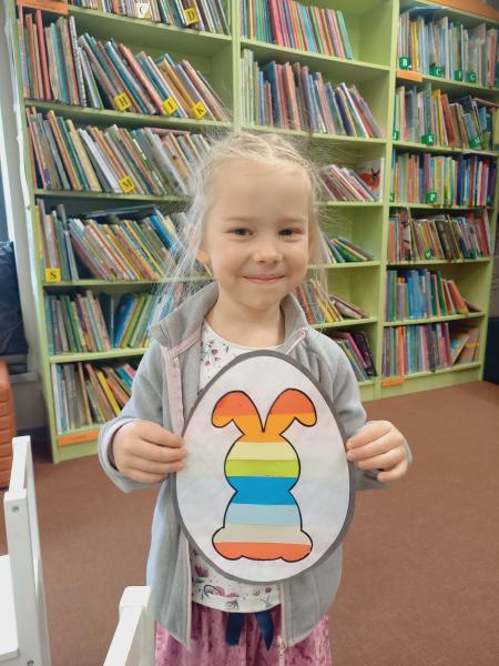 przeczytaliśmy bajkę o Zajączku Wielkanocnym, który rozdawał jajeczka z pomocą swoich przyjaciół – baranka i kangurka. Nasza praca plastyczna to kolorowy zajączek w jajku, a na koniec była zabawa w szukanie jajek po bibliotece. Sami zobaczcie jak przebiegają nasze zajęcia
