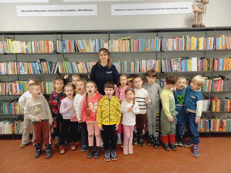 Ananasków z Przedszkola Publicznego nr 2 w Kątach Wrocławskich, którzy chcieli zapoznać się z biblioteką i pracą bibliotekarza. Po krótkim spacerze wśród regałów i próbie skanowania karty bibliotecznej, w dziale dziecięcym przedszkolaki wysłuchały wiersza o
