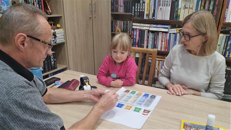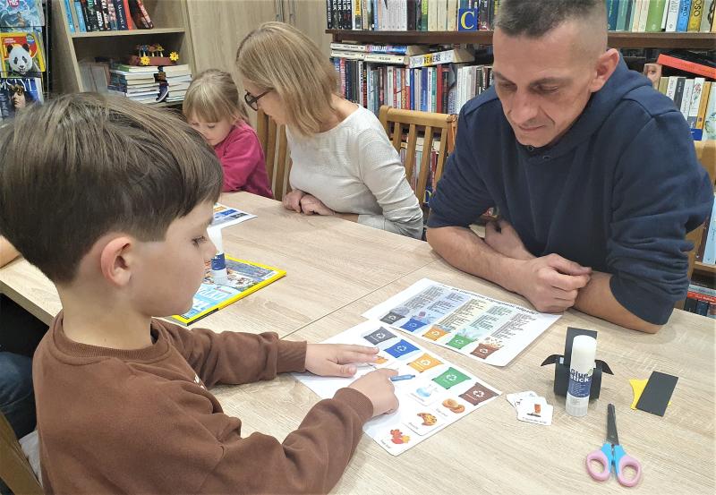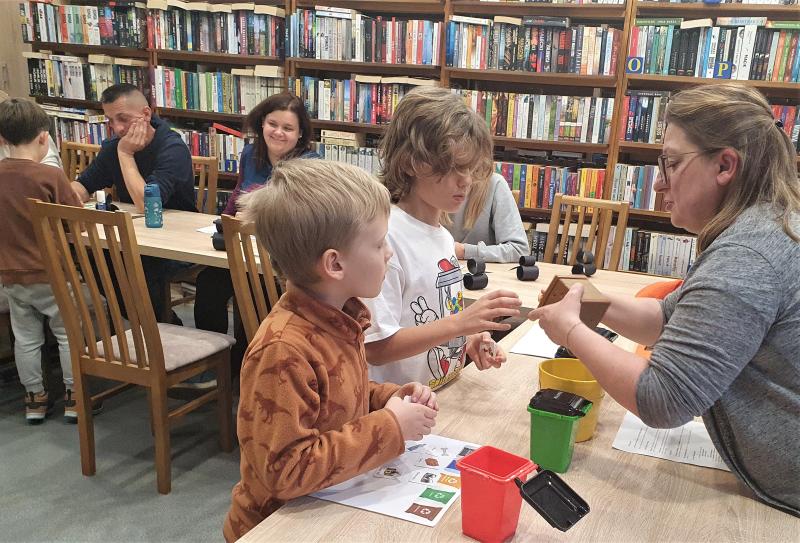 Ploteczki wokół książeczki, czyli jak Pingwinek Pingo uratował naszą planetę! W minioną środę w bibliotece w Smolcu odbyły się międzypokoleniowe warsztaty z cyklu „Ploteczki wokół książeczki”. Tym razem dzieci i dorośli wspólnie zastanawiali się, komu i dlaczego warto pomagać i doszli do wniosku, że nasza planeta też potrzebuje przyjaciół! Z pomocą małego, dzielnego Pingwinka Pingo (bohatera teatrzyku kamishibai) poznaliśmy historię o zanieczyszczonej Ziemi, której mieszkańcy postanowili działać. A żeby naprawdę pomóc przyrodzie, uczestnicy wcielili się w młodych ekologów i – zgodnie z gminnymi wytycznymi dotyczącymi segregacji odpadów – wspólnie z dorosłymi posegregowali śmieci do odpowiednich kolorowych koszy. Plastik, szkło, odpady bio i zmieszane, odpady niebezpieczne – nikt się nie pomylił! Papierowe kartoniki z odpadkami wędrowały w mgnieniu oka do właściwych pojemników, a śmieci zamieniły się w... świetną zabawę i naukę przez działanie. Dziękujemy wszystkim uczestnikom za wspólną ekologiczną przygodę z Pingo! Bo jak się okazuje, pomagać można razem i z uśmiechem!