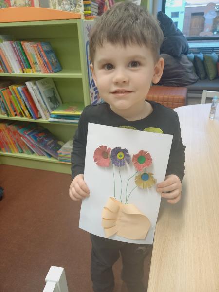 Nietopusiem, którego wszyscy uważali za potwora i strasznie się go bali. Na szczęście okazał się przesympatycznym zwierzakiem, który uwielbiał piec, a przy okazji bardzo chciał się z kimś zaprzyjaźnić. Po przeczytaniu bajki zabraliśmy się za robienie własnych nietoperzy z papierowych talerzy. Natomiast na kolejnych zajęciach przeczytaliśmy książeczkę „Kicia Kocia - Wiosna” i zrobiliśmy piękne bukiety kwiatów