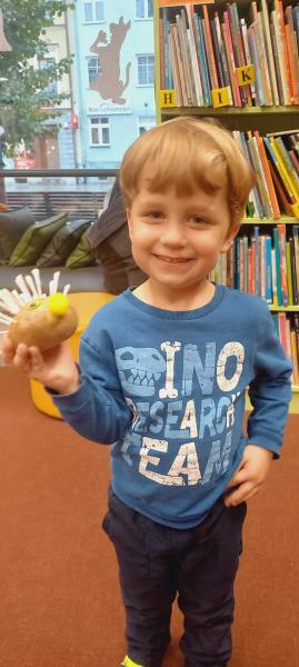 jeżyka, a pracą plastyczną było stworzenie jeża z ziemniaka i…. uwaga…. patyczków do uszu.