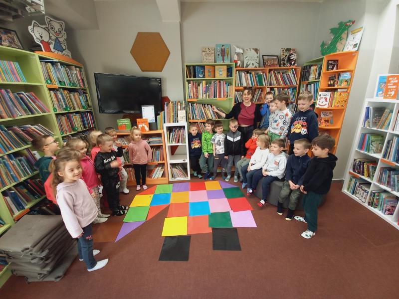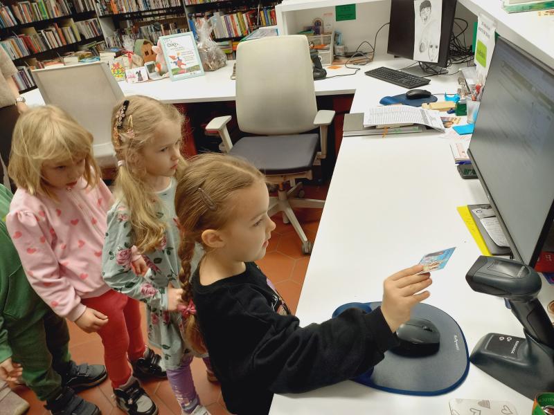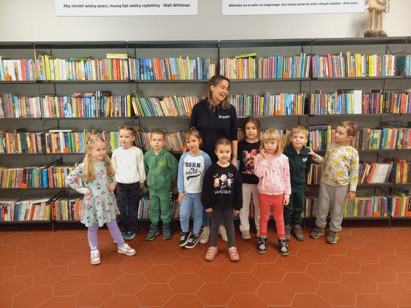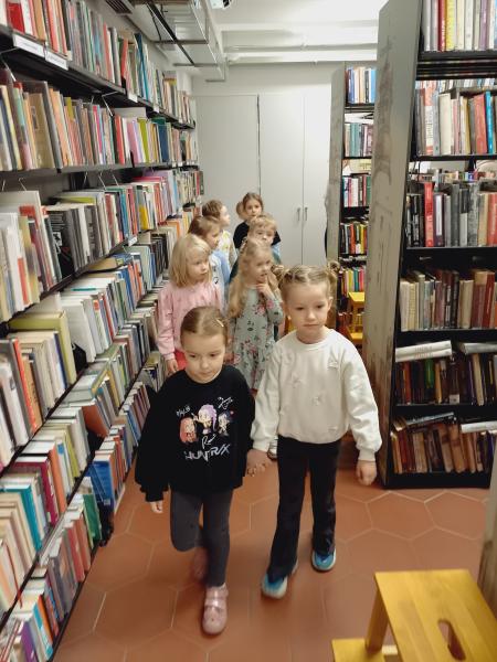 Żyrafki z Przedszkola Junior, aby zapoznać się z biblioteką oraz
