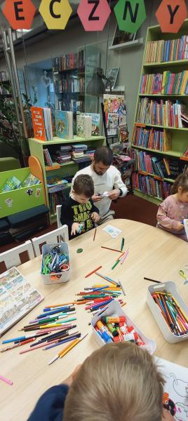 Wilka, który bardzo chciał zmienić kolor, ale niestety żaden mu nie pasował – ani czerwony, ani zielony, ani brązowy… No po prostu żaden. A praca plastyczna to stworzenie własnego wilczka z tutki do papieru.